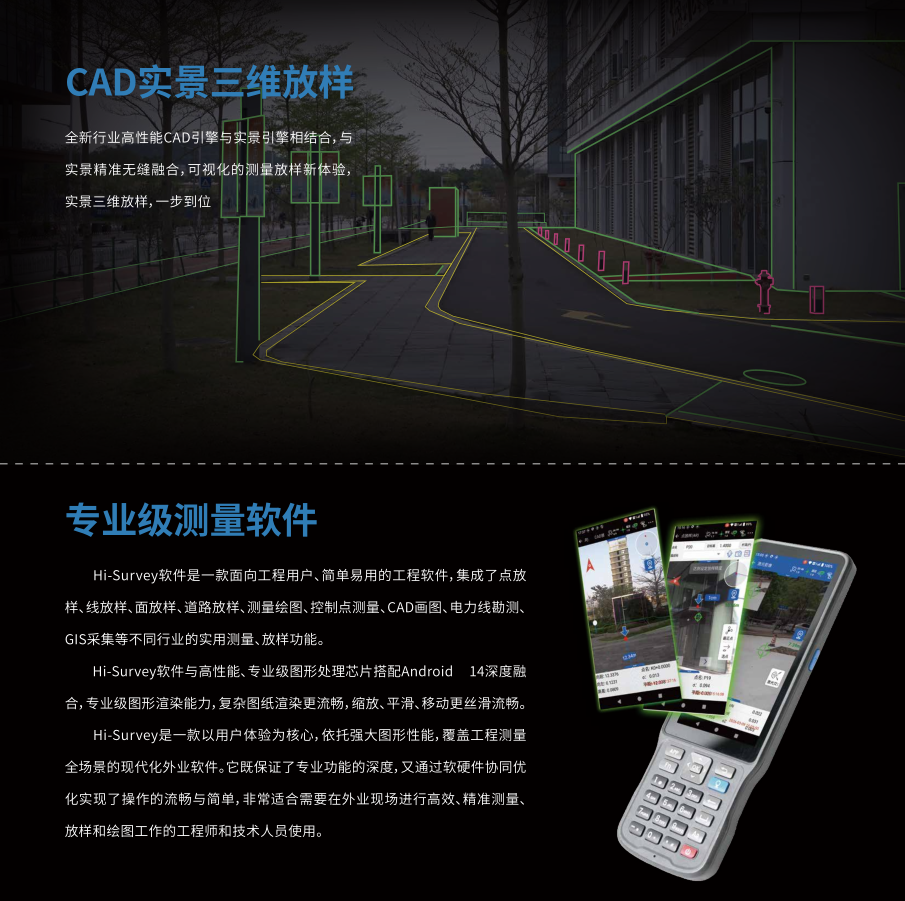 外,一键测量,解决传统RTK测量作业最后50米的测量难题,改变了传统RTK作业方式,让测量作业更加从容、高效。